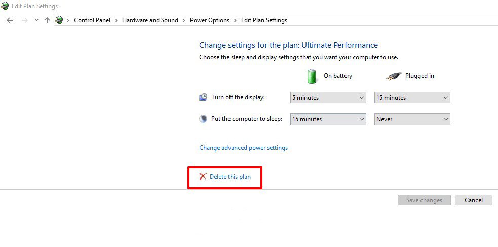Hoặc nếu bạn muốn xóa luôn chế độ này bạn hãy chọn Change plan settings. Nhưng mình nghĩ bạn không nên xóa làm gì, chỉ cần chọn lại chế độ khác mà bạn muốn là được rồi.